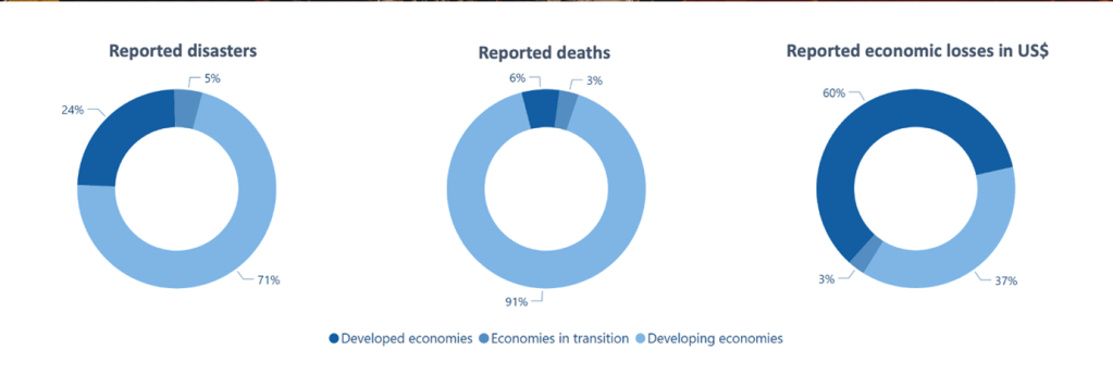 - In Small Island Developing States, 20% of disasters with reported economic losses led to an impact equivalent to more than 5% of the respective GDPs, with some disasters causing economic losses above 100%.